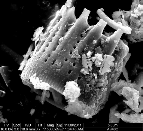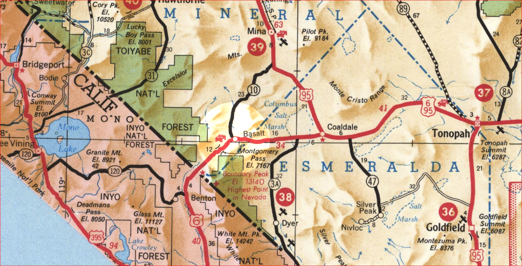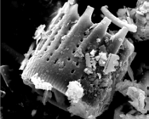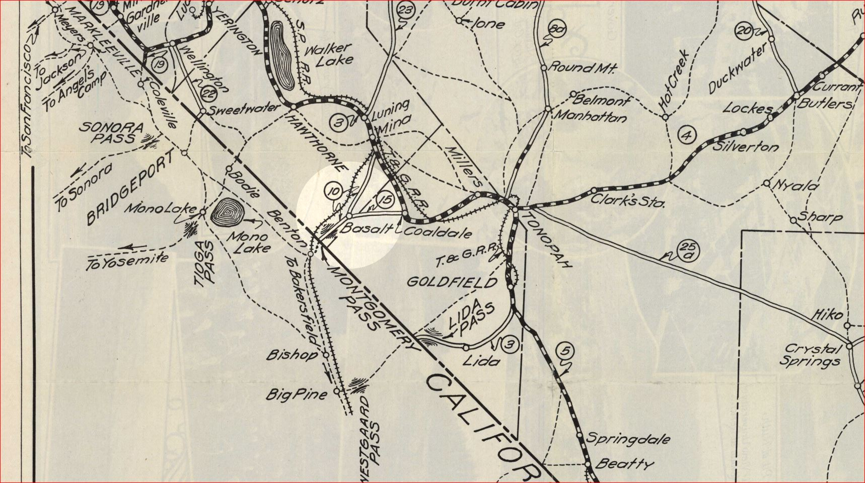1895 Rand McNally Map showing Basalt on the Carson and Colorado railway 1932 State of NEvada Road map 1969 State road map showing a "rest stop" symbol at Basalt 2001 Stte road map showing Basalt as abandoned. This is what they're digging up at Basalt nowadays. A closeup of a diatom courtesy the Dicalite Company.
