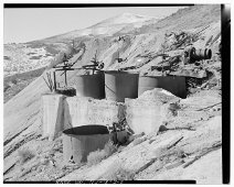 View of road past dining hall remains on left and family residence left of center Library of Congress, 1995 View of office of Lucky Tiger Mill and Mine complex. Library of Congress, 1995 Lucky Tiger office, Library of Congress, 1995 Water tanks, office in distance, Library of Congress, 1995 Mill with thickening tanks and agitators, Library of Congress, 1995 Assay office facing northwest, office in background, Library of Congress, 1995 Mill tailings, water pump on lower right, Library of Congress, 1995 Family residence, Library of Congress, 1995 Dining hall area, residence on right side, Library of Congress, 1995 Assay office, Library of Congress, 1995 Entrance to Hatch adit, Library of Congress, 1995 View of mill from tailings, Library of Congress, 1995 View of the mill, agitators, and thickening tanks, Library of Congress, 1995 Hoist, Library of Congress, 1995 Dugout and residence, Library of Congress, 1995 Stable, Library of Congress, 1995 On the way up to Buckskin Almost to Buckskin