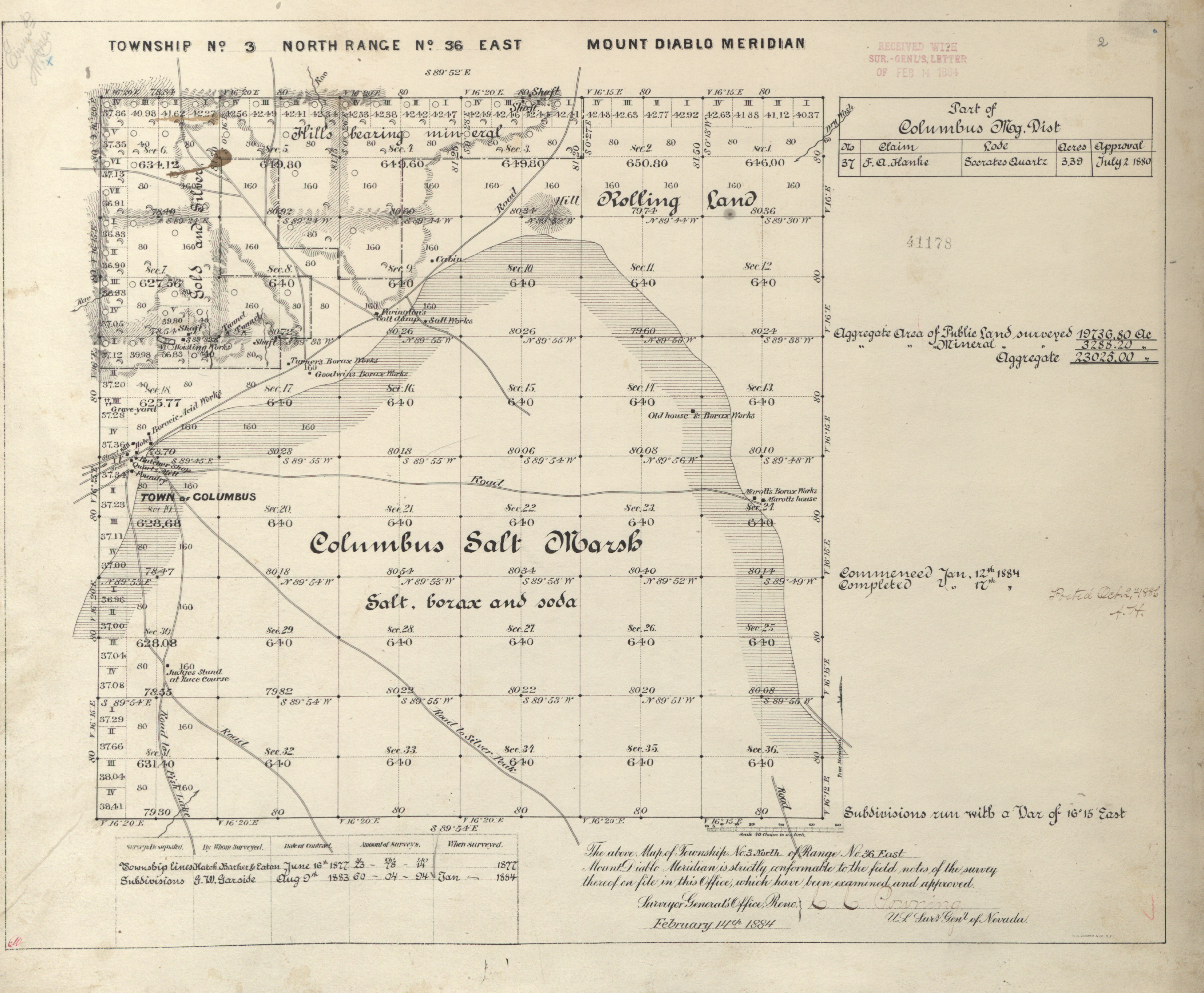 Hawthorne, NV-CA, 1:250,000 quad, 1909, USGSHistorical Topographic Map Collection Columbus, NV, 1:24,000 quad, 1967, USGSHistorical Topographic Map Collection Columbus, Esmeralda County, Nevada, about 1880. There is an inscription on the back of the image: "The Pacific Borax Company was one of four companies mining…
