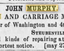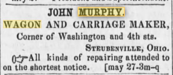 Newspaper advertisement for one of the era's most popular wagons. True American, Steubenville, OH, May 27, 1857