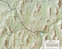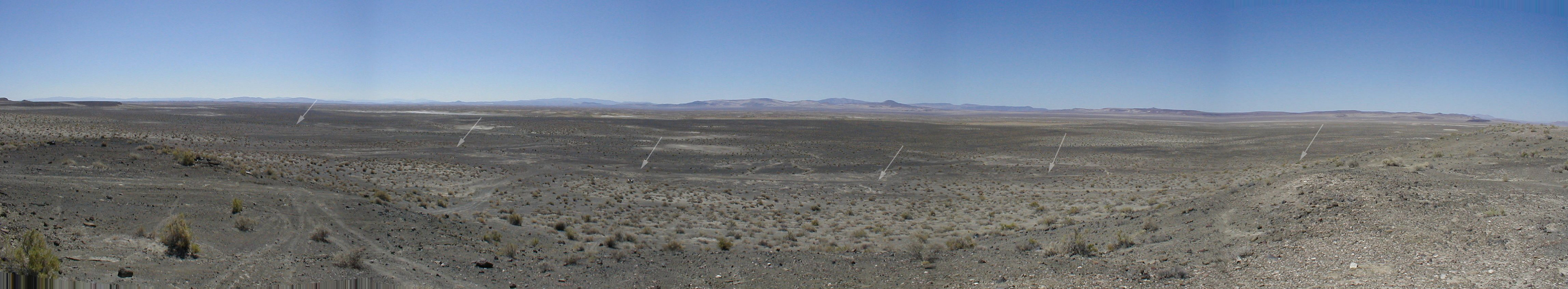 A view of the Carson River Route from the top of Upsal Hogback, north of Fallon. The trail is marked by arrows.