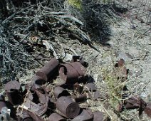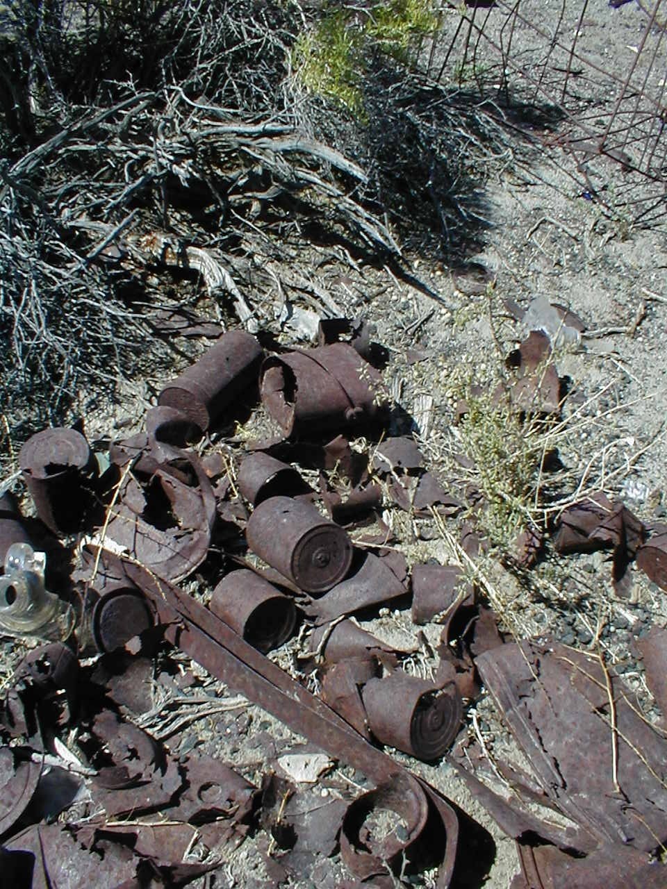 Many old cans at the dump site. Lots of old cans with tops soldered on.