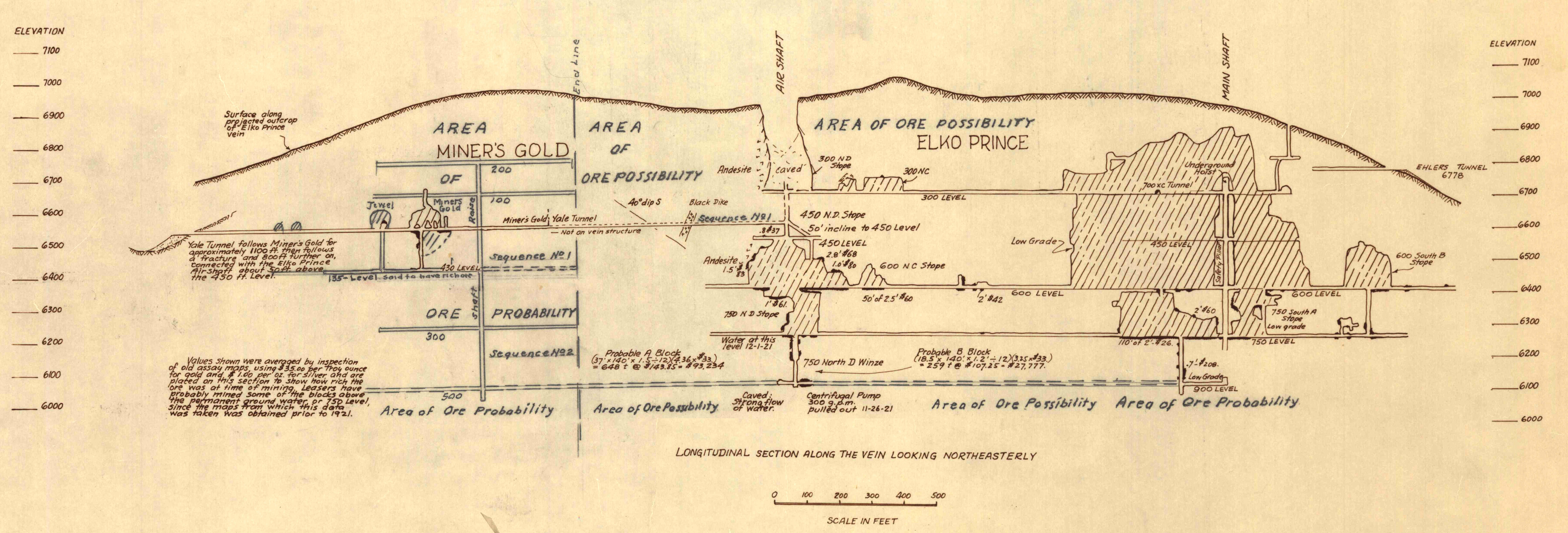 1965 cross-section of the Miner's Gold and Elko Prine mines