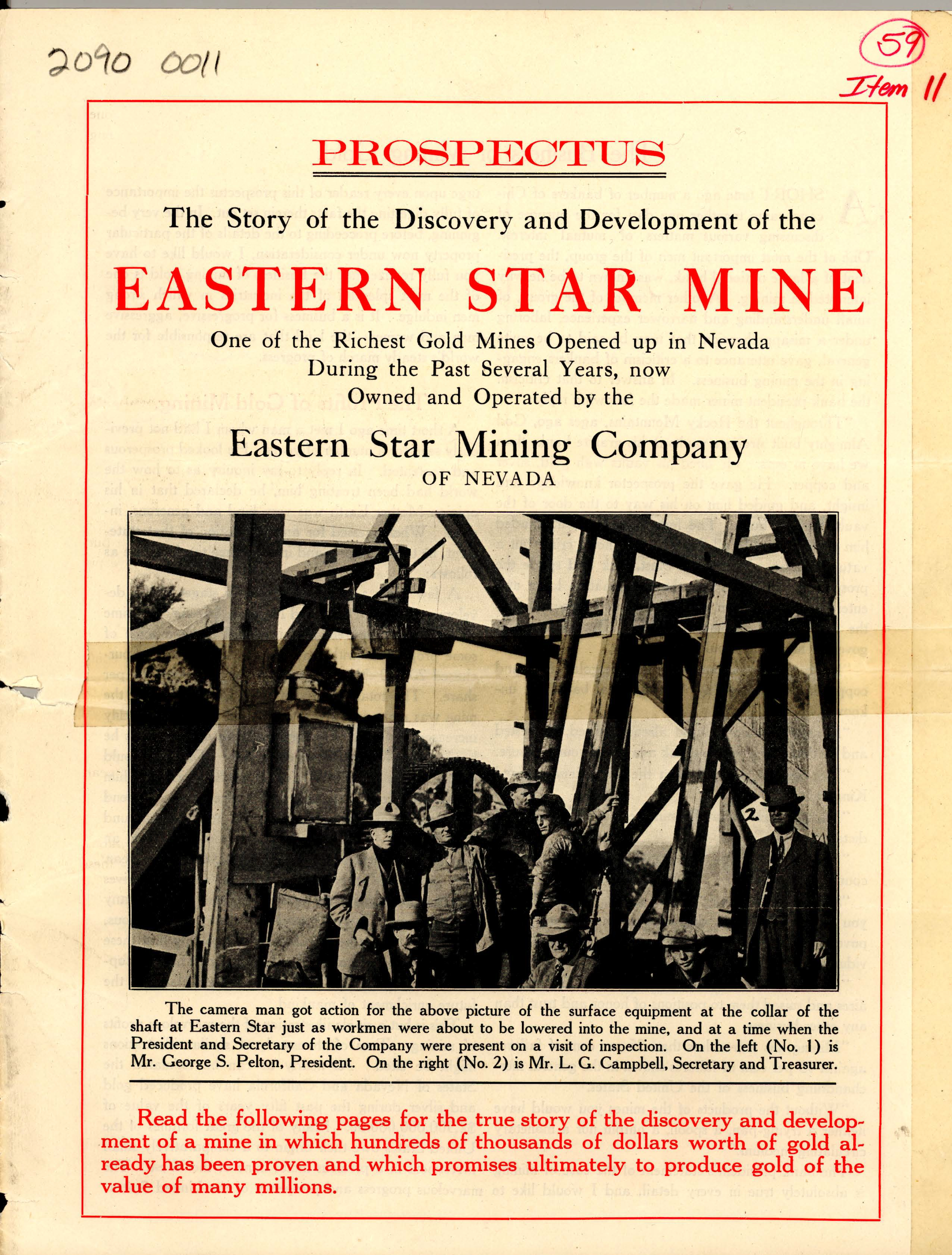 Front page of 1914 prospectus of the Eastern Star mine, which lay about 4 miles NNE of Midas.