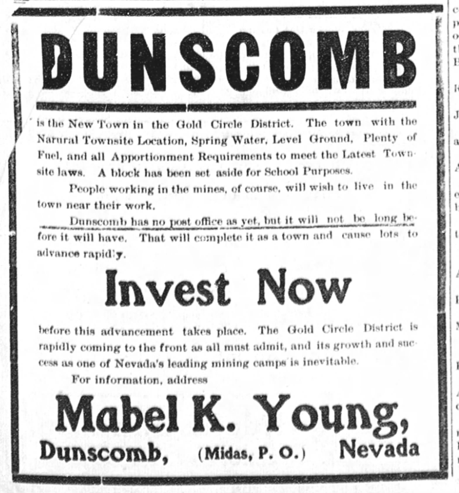 A advertisement in the Weekly Independent, January 28, 1910, for the new town of Dunscomb. Couldn't find any other references to it though. Supposedly in…