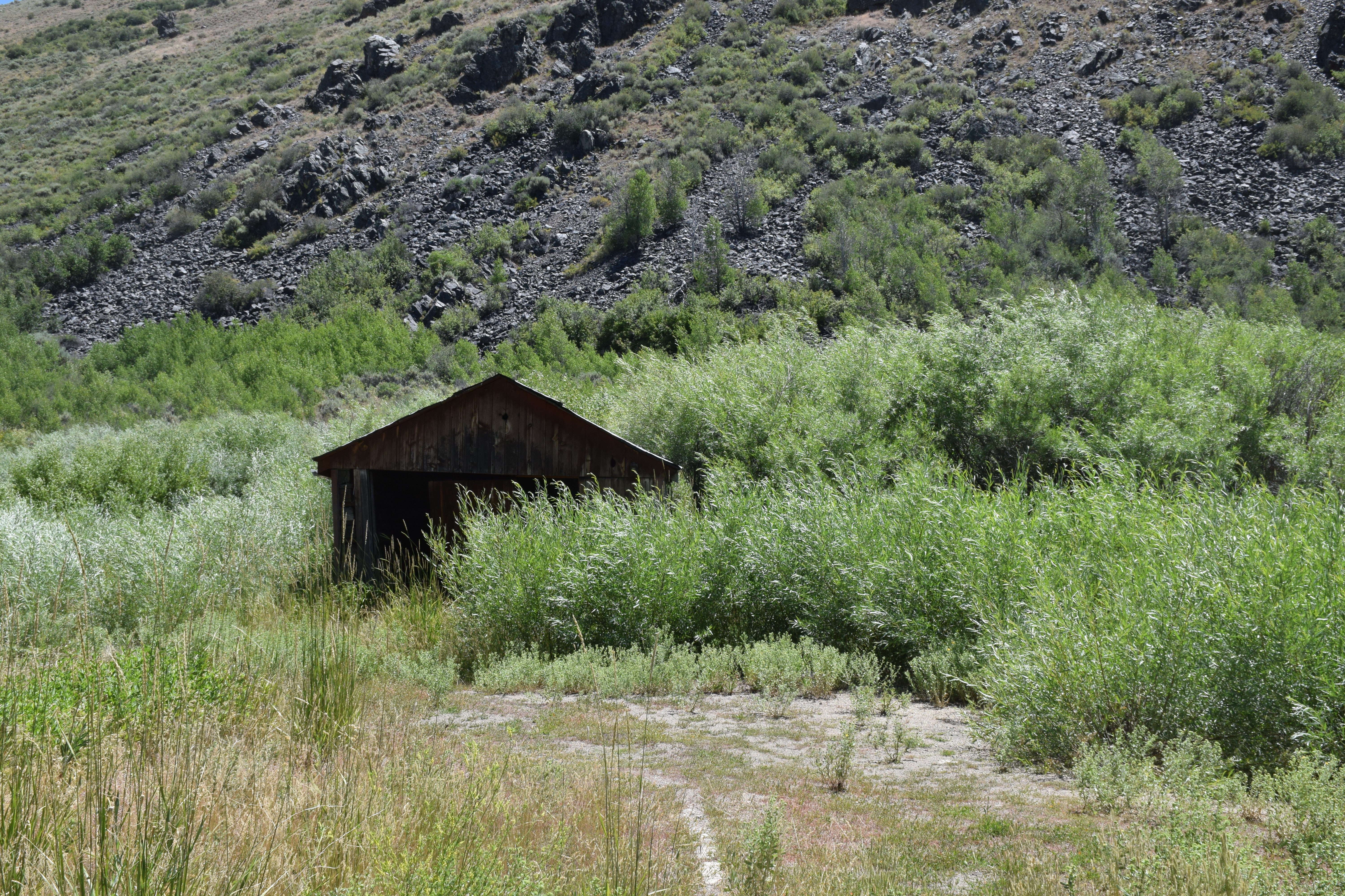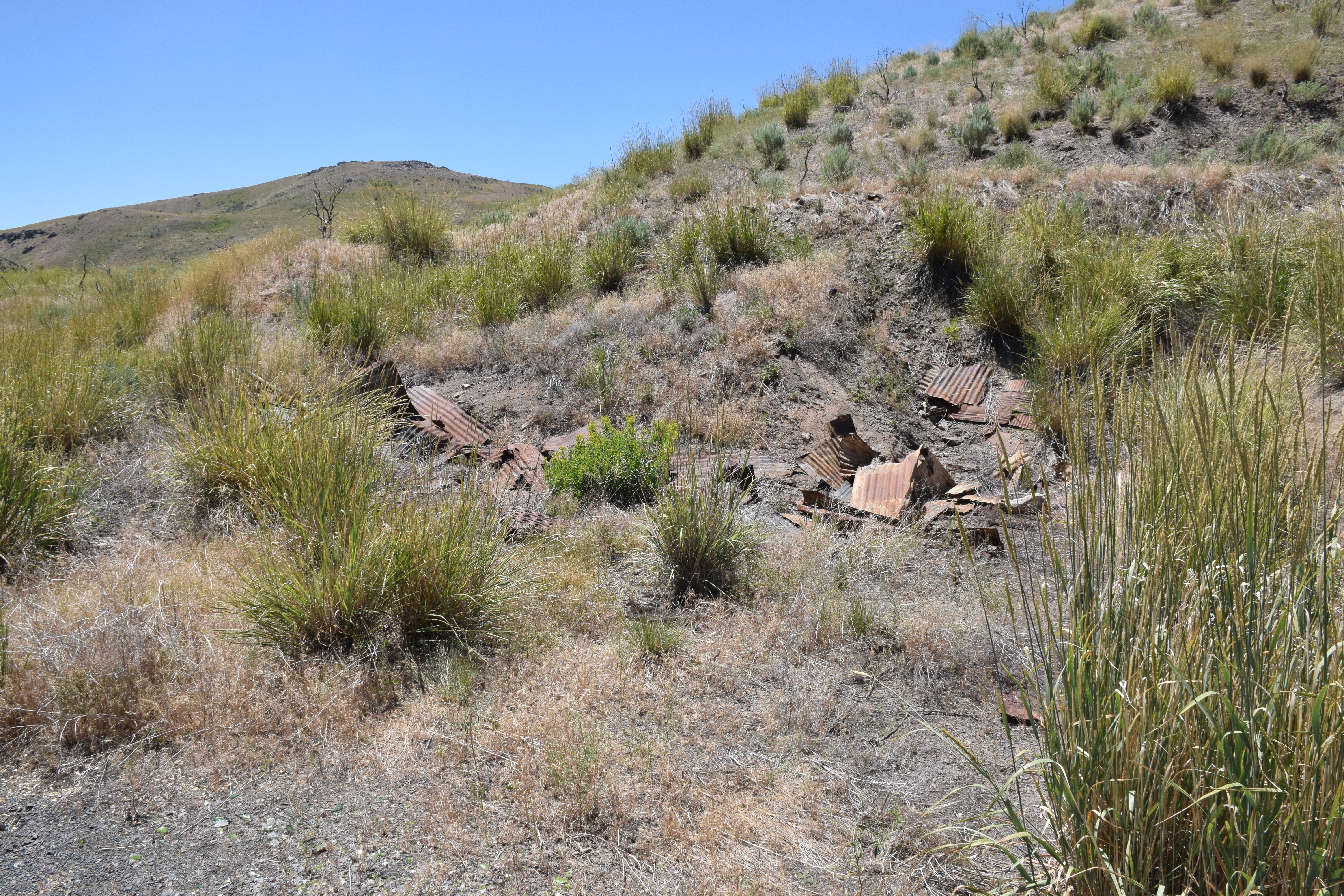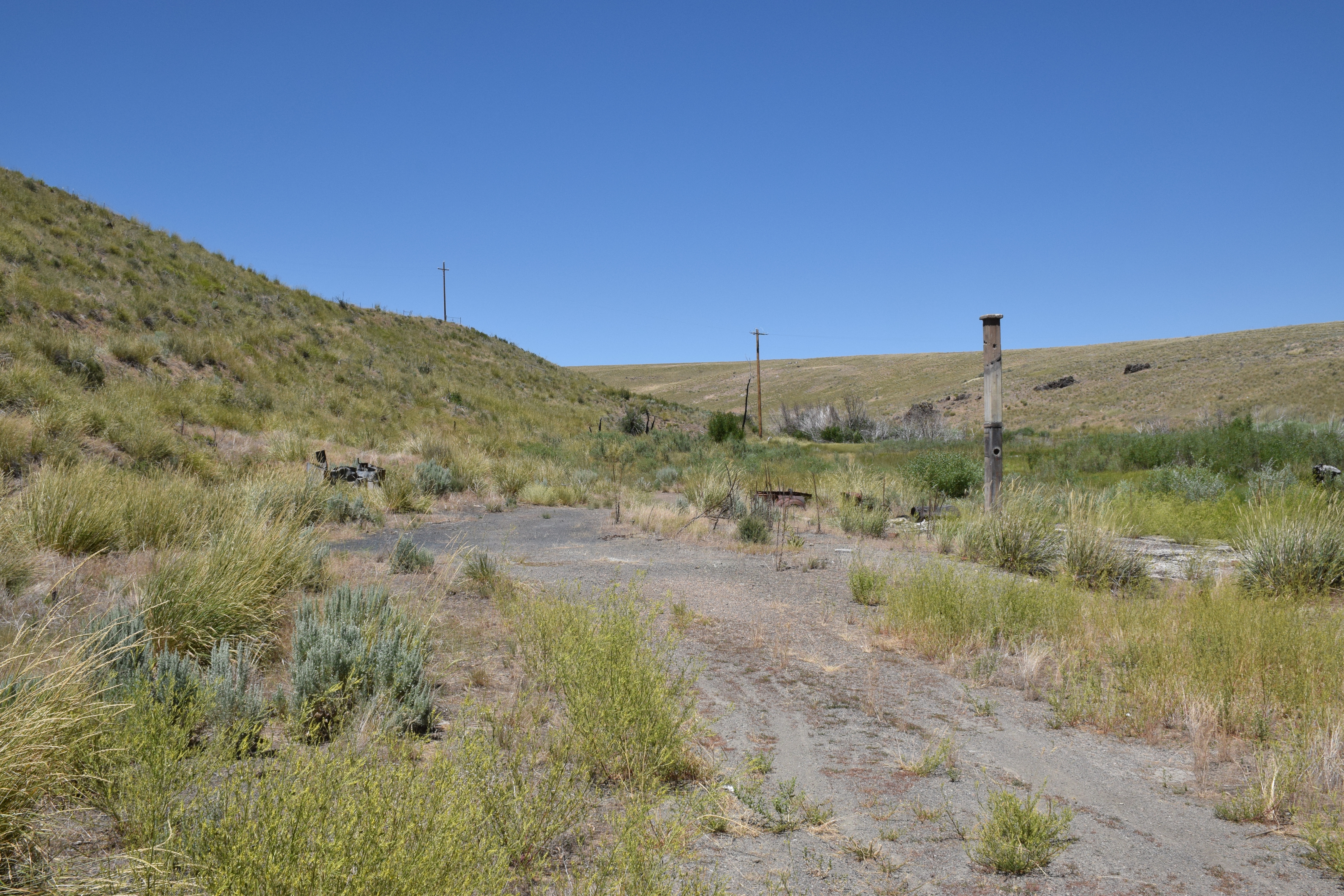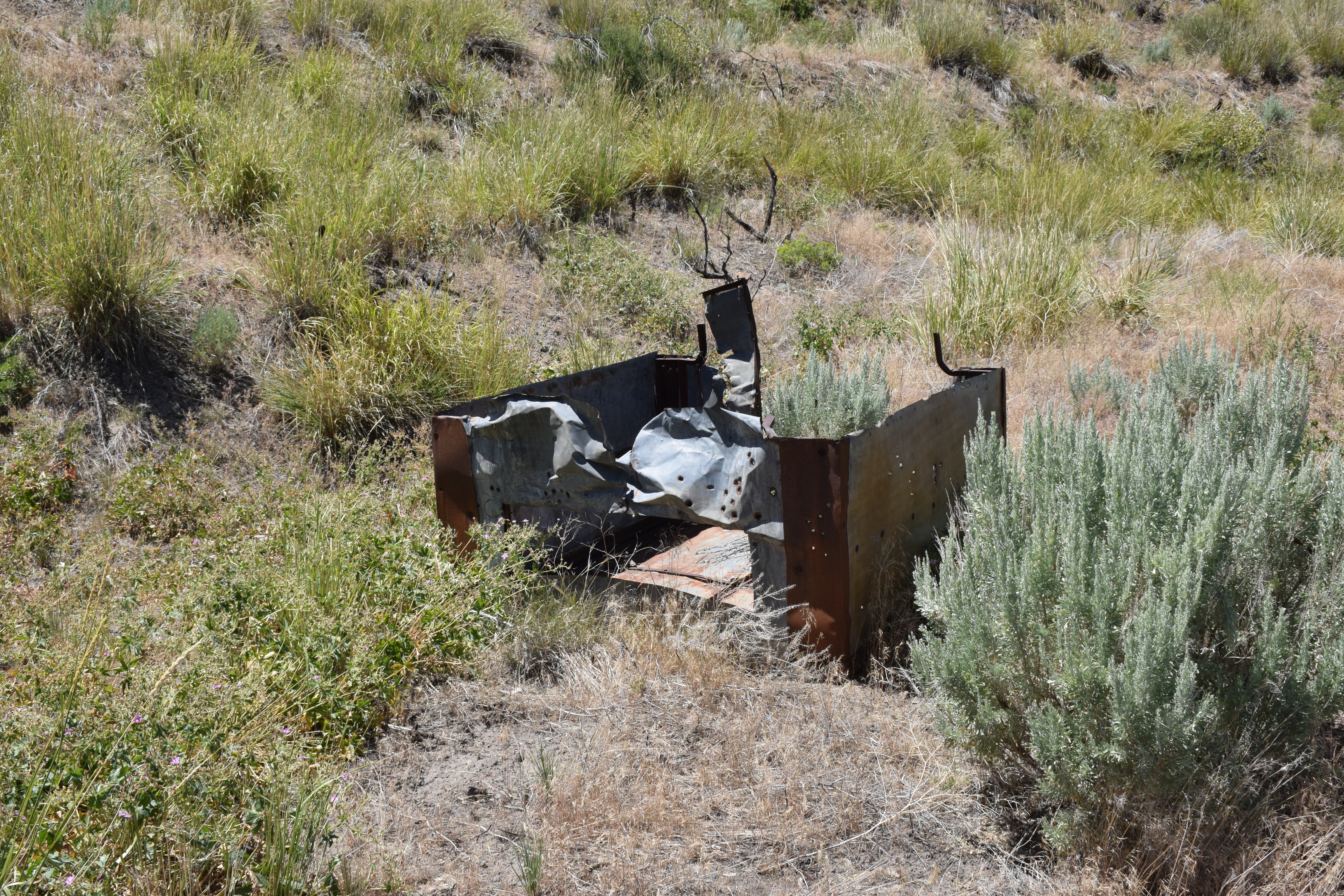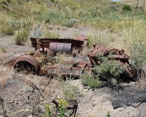A 1936 USGS map with Rio Tinto highlighted and Patsville to the east A 1958 DOT historic quad showing Patsville, with Rio Tinto highlighted to the west By 1940, Patsville wasn't important enough to appear on a state road map The one remaining structure (that we could fine) on the east side of the highway On the west side of the highway, where most of the structures were, it appears a fire came through to burned everything down. The remains f someone's Saab