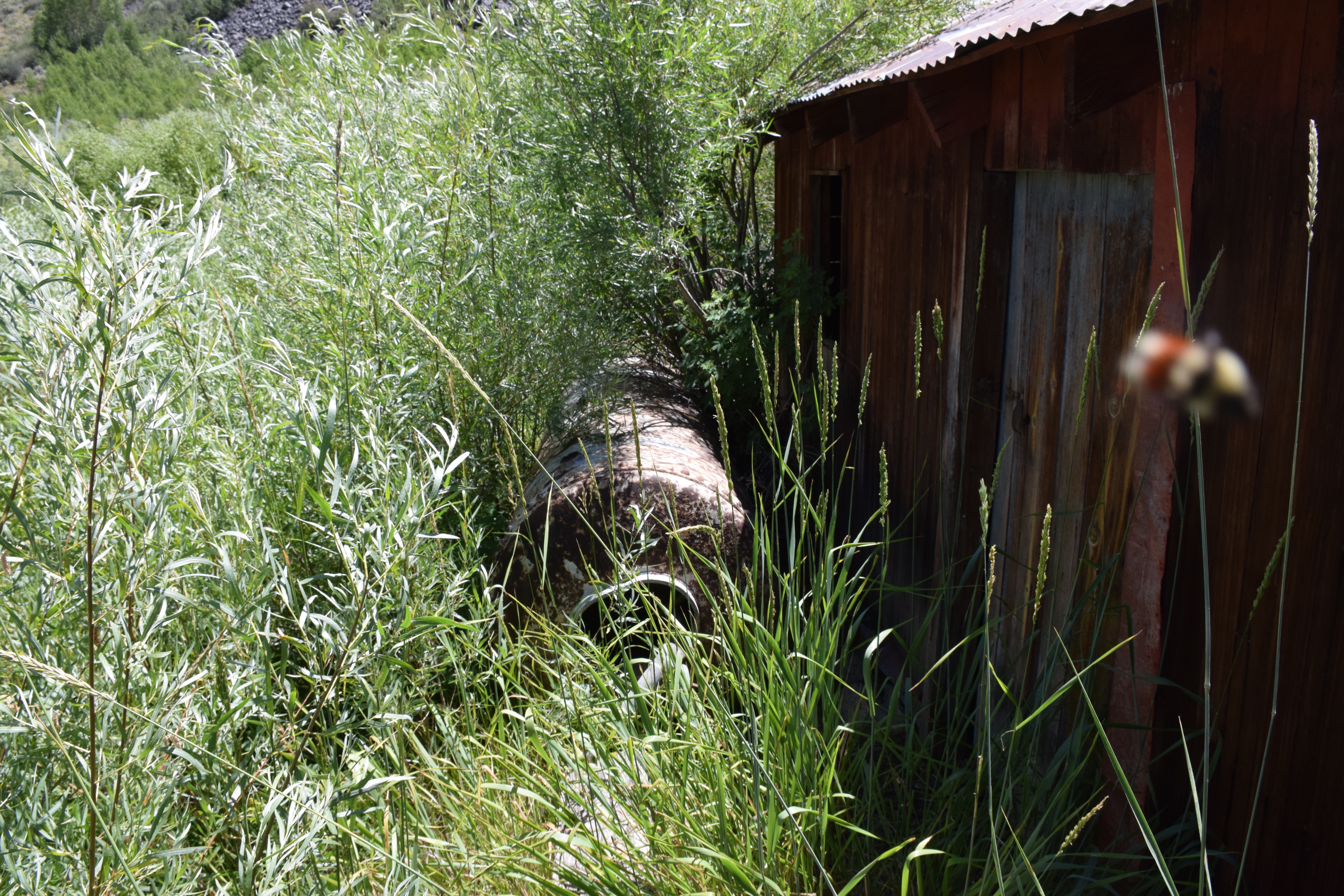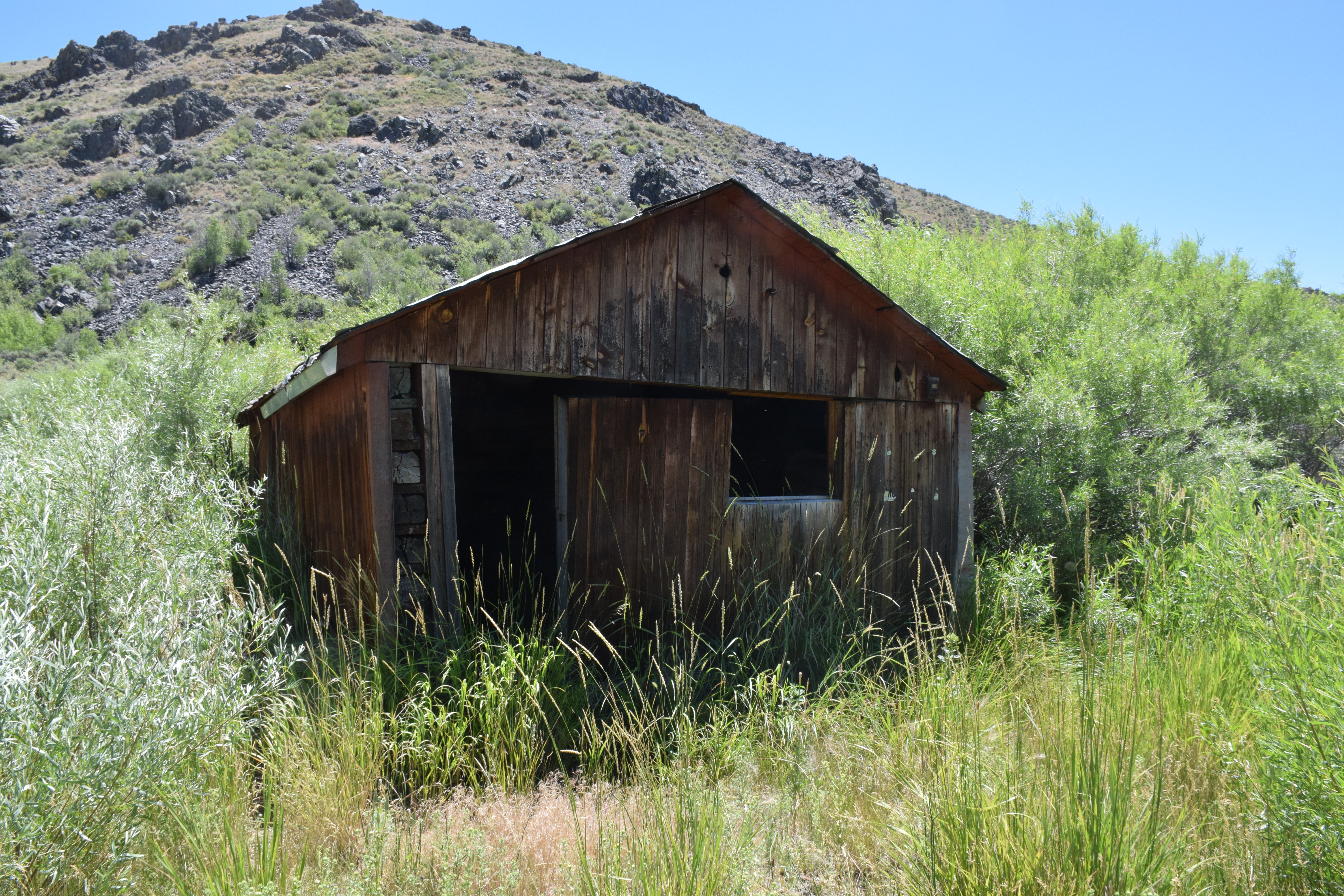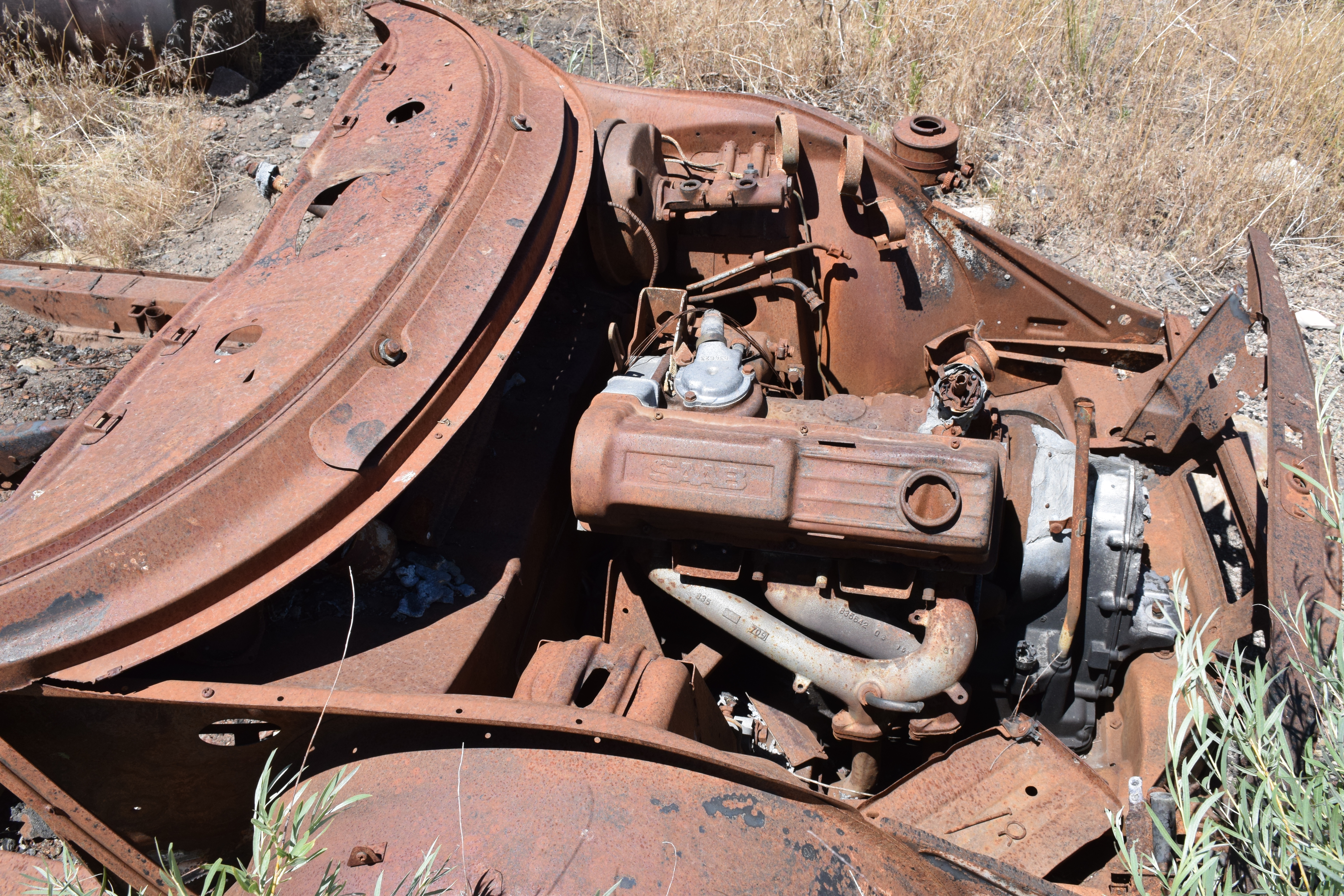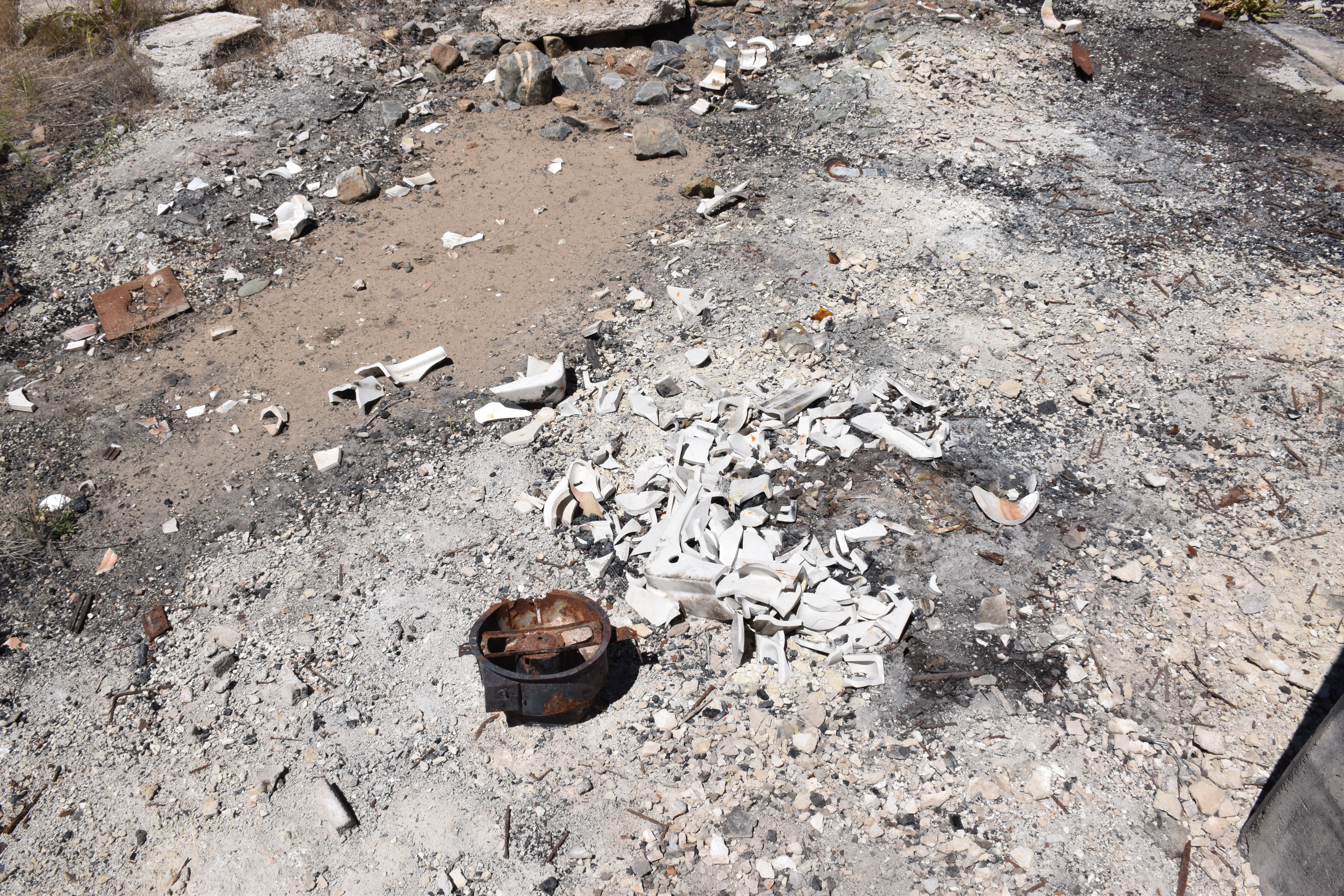 A 1936 USGS map with Rio Tinto highlighted and Patsville to the east A 1958 DOT historic quad showing Patsville, with Rio Tinto highlighted to the west By 1940, Patsville wasn't important enough to appear on a state road map The one remaining structure (that we could fine) on the east side of the highway On the west side of the highway, where most of the structures were, it appears a fire came through to burned everything down. The remains f someone's Saab
