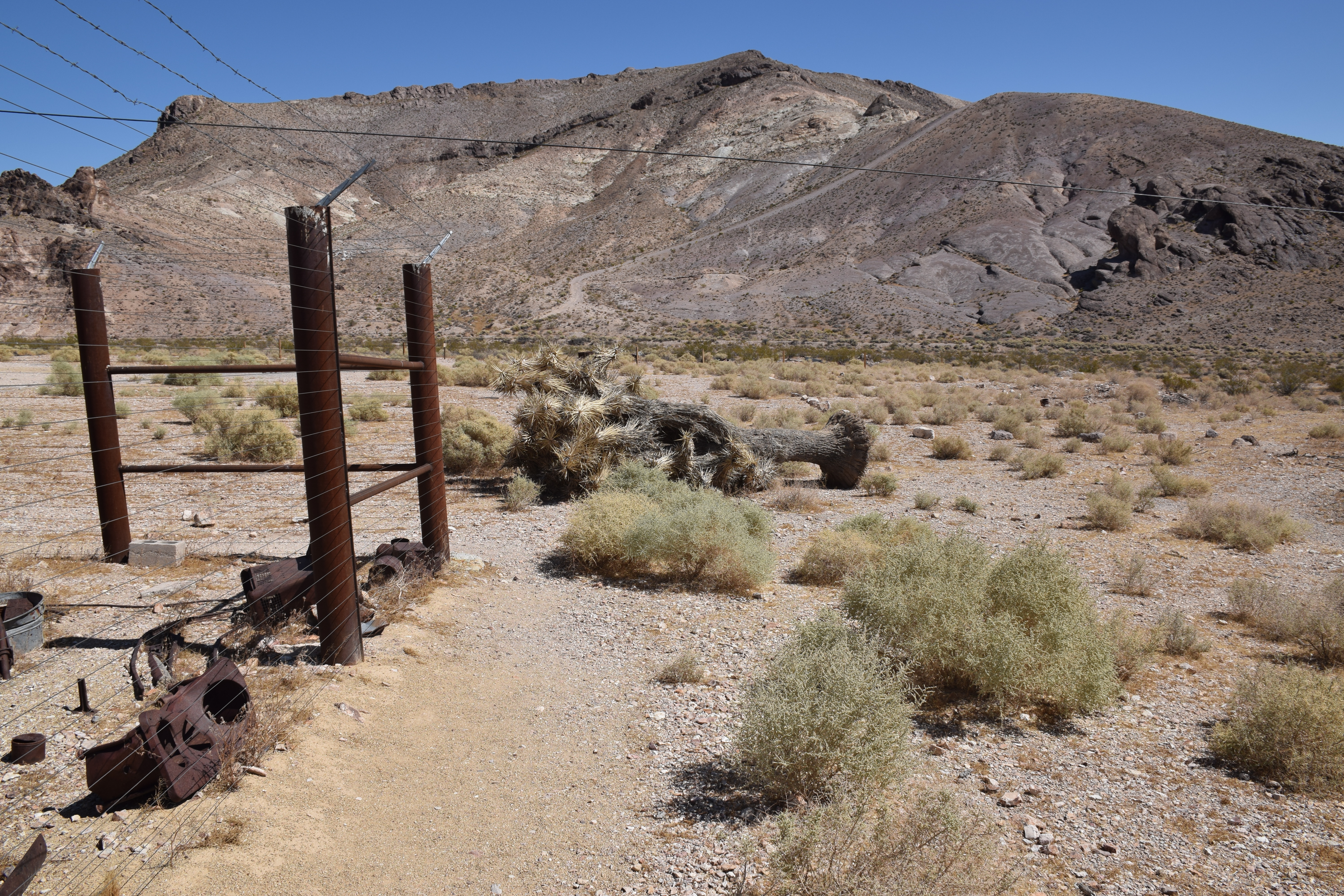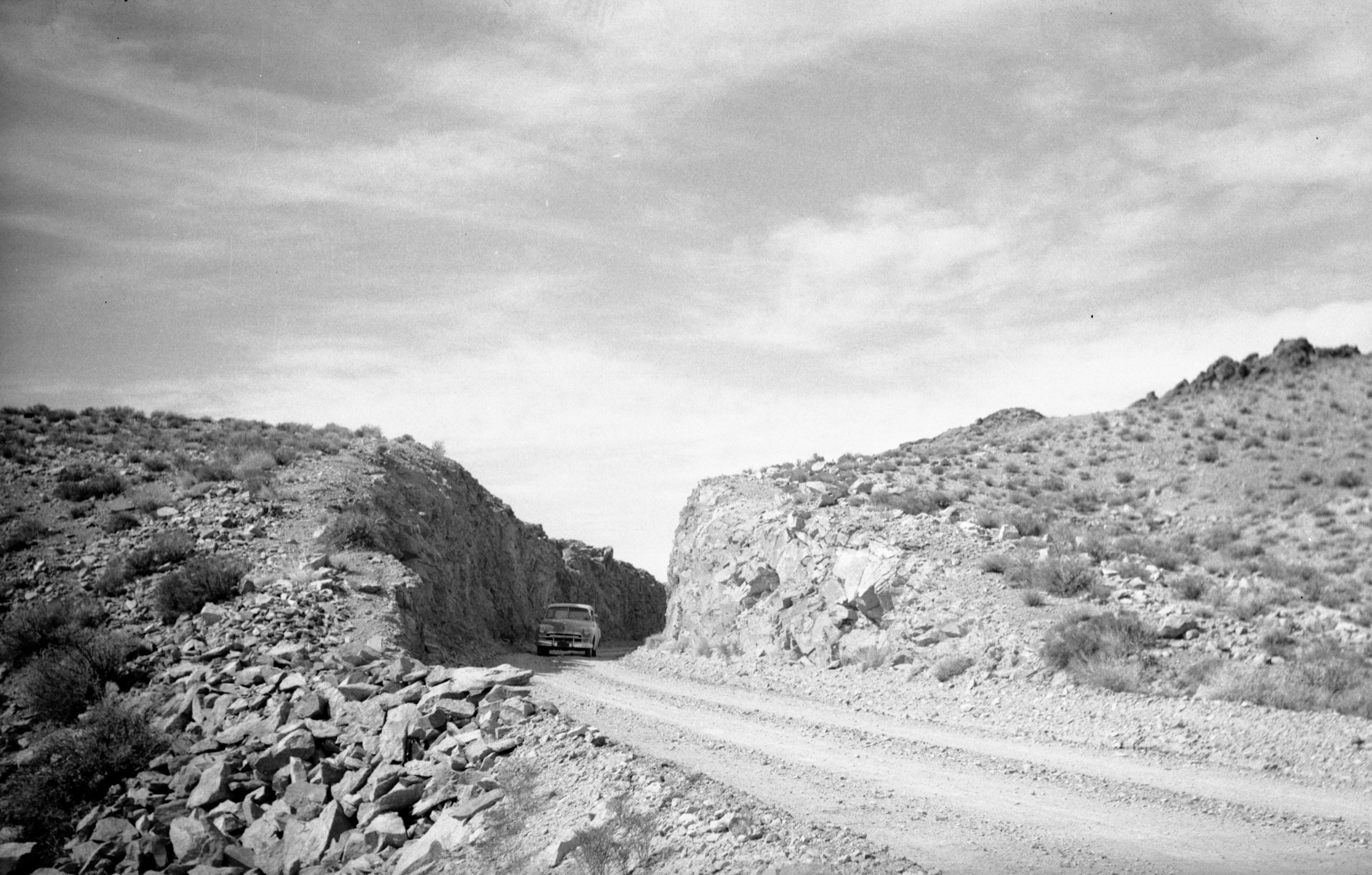 151 Henchey, Paul L. County Highway to Rhyolite, Nev. Showing Abandoned Right of Way, Las Vegas and Tonopah Railroad, Abandoned in 1917, SV-166. UC Davis Library, Archives and Special Collections, 15 Oct. 1950. digital.ucdavis.edu