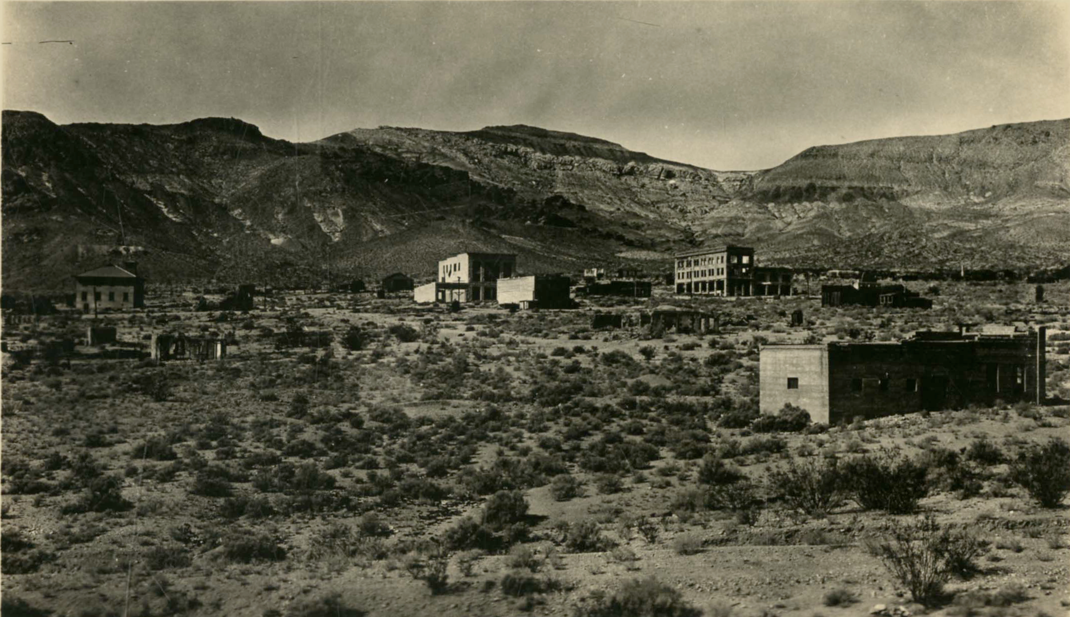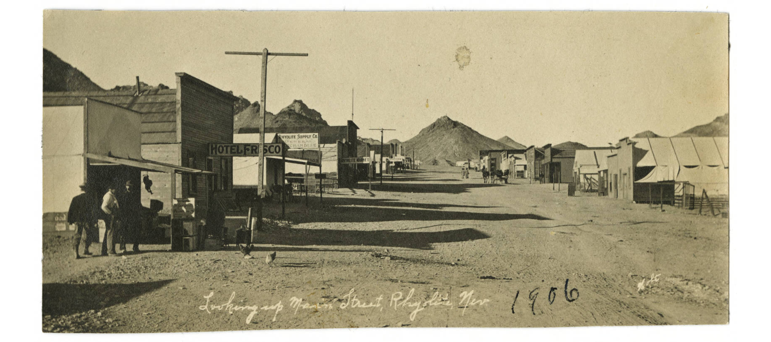 23 Photograph of buildings, Rhyolite (Nev.), early 1900s, Charles Thomas-Perry Collection, courtesy UNLV