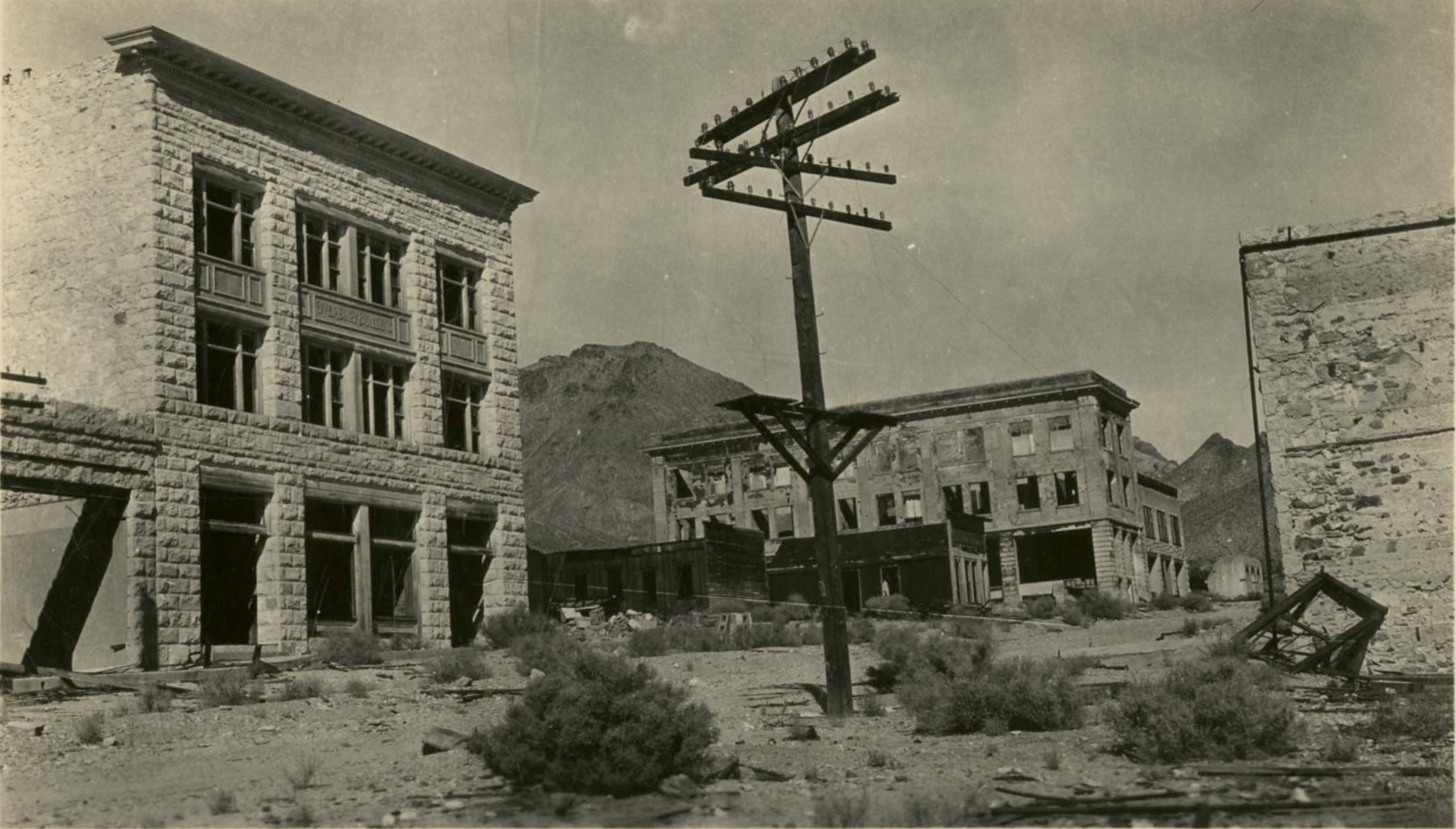 150 Henchey, Paul L. Golden Street, Rhyolite, Nevada, SV-55. UC Davis Library, Archives and Special Collections, 10 Oct. 1949. digital.ucdavis.edu