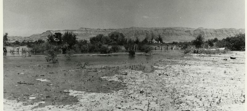 Fiddling while Rome burns? Picking figs while At. Thomas floods! "Elbert Edwards picking figs from an orchard in St. Thomas, Nevada as the rising waters of…