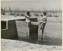 Hazel Hall, Albert Hafner, Linda Hafner, and Ilene Hafner playing with an abandoned vehicle in St. Thomas. 1952 Courtesy UNLV