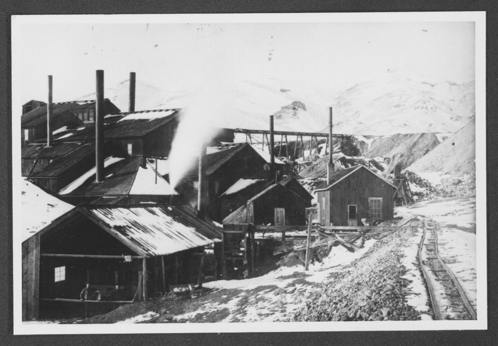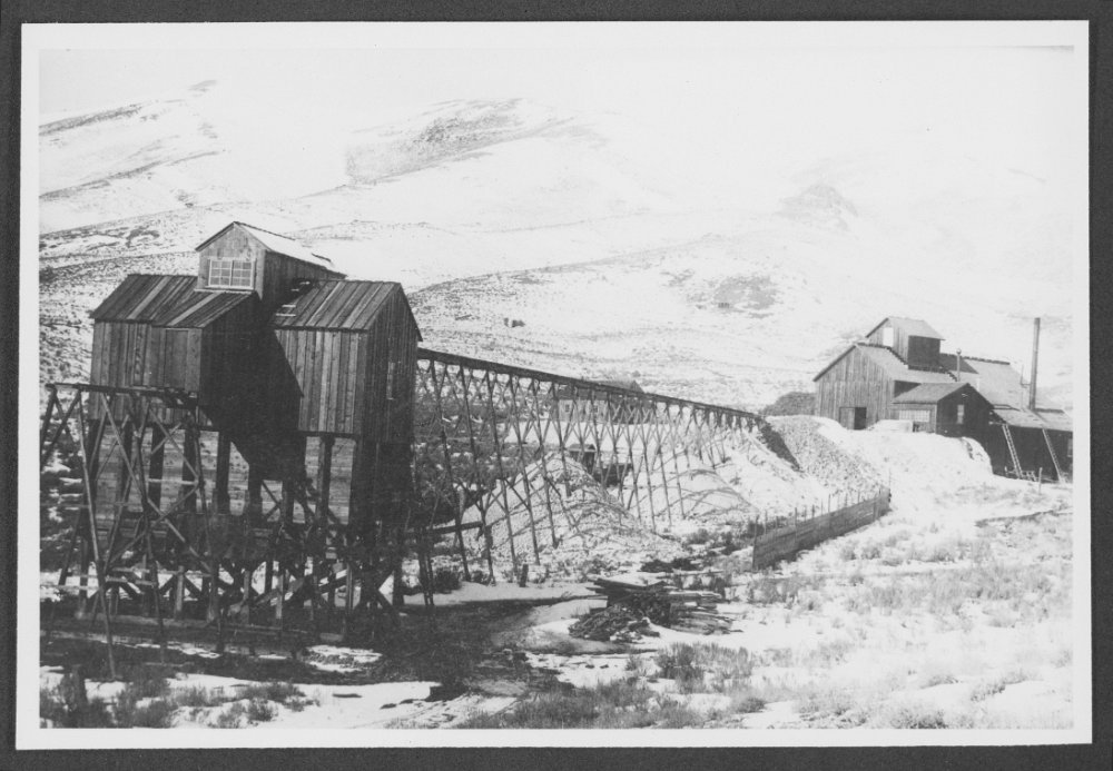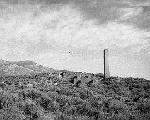A horse drawn sagebrush wagon at the Dexter Mill, 1911, courtesy UNR. Sagebrush was harvested for fuel for 25 miles around Tuscarora.