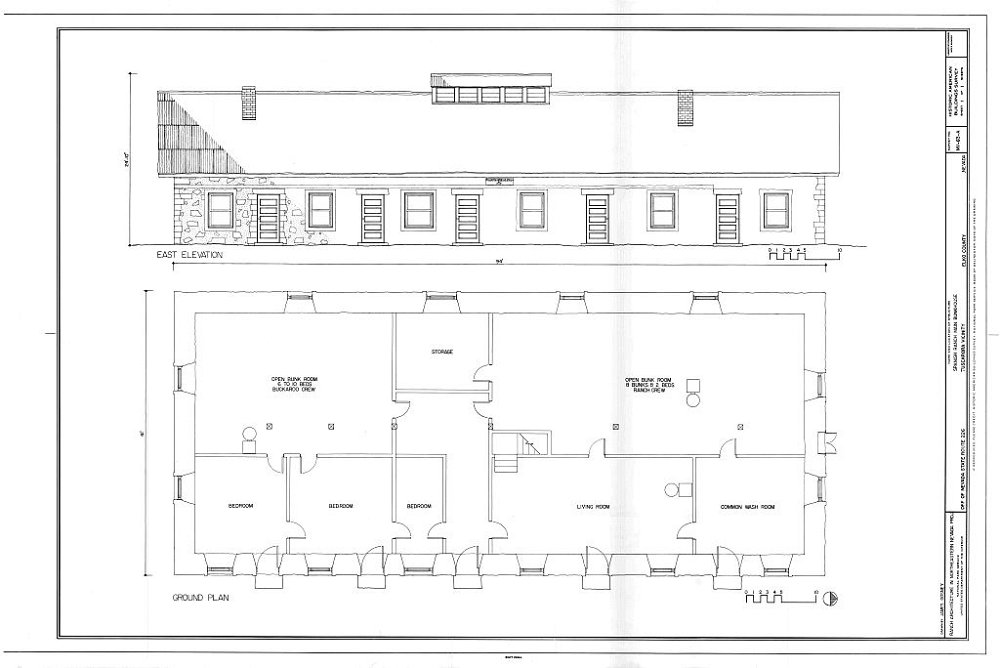 Plans of the main bunkhouse of the Spanish Ranch, located about 8 and a half miles NE of Tuscarora. Courtesy Library of Congress.