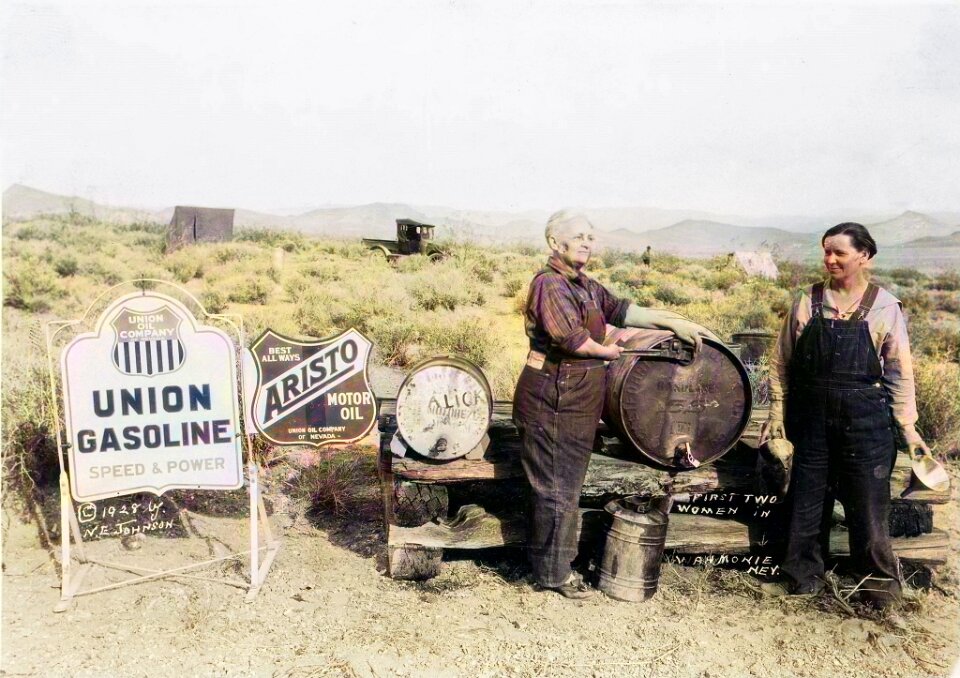 10 Gilbert's makeshift store., around 1928. Note the slot machine. Gambling was legalized in Nevada on March 19, 1931, when Governor Fred B. Balzar signed Assembly Bill 98 into law. This legislation, also known as the "Wide Open Gambling Bill," allowed licensed gambling establishments to operate legally, reversing a previous ban from 1909. Courtesy UNLV