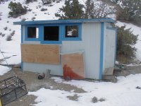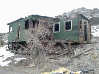 This [formerly] comfy cabin is on the road towards the green cabin on the right.